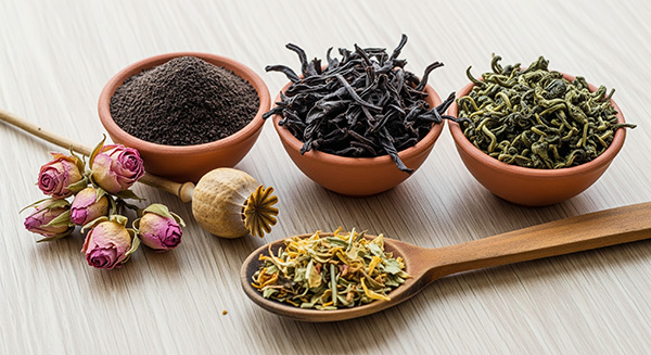 Různé druhy čajů a bylinek pro každý den