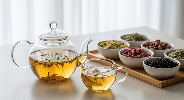 Zastavit shon a zmírnit stres: Už samotný proces přípravy čaje – ohřátí vody, louhování lístků, vdechování stoupající páry – působí uklidňujícím dojmem. Studie naznačují, že smyslové zážitky při pití čaje (vůně, chuť, teplo) mohou snižovat hladinu stresového hormonu kortizolu a navodit pocit uvolnění. Například v jednom experimentu pouhé vdechování vůně černého čaje snížilo ukazatele stresu u lidí plnících obtížné úkoly. Květinové bylinné čaje jako heřmánkový navíc samy o sobě zklidňují a usnadňují relaxaci, zatímco svěží aroma mátového čaje může naopak povzbudit pozornost.