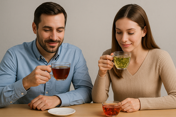 Pro různé životní styly: Kdo žije zdravě a sportuje, může sáhnout po zeleném nebo oolong čaji (podpora metabolismu a regenerace). Kdo potřebuje detoxikaci, volí běžně bylinkové čaje (kopřiva, březový list, zázvor). Pro milovníky silných chutí jsou vhodné čaje ochucené kořením (chai s kardamomem/kurkumou) – to často vyhovuje mužům i ženám toužícím po „peprnějším“ zážitku. Celkově platí: pití čaje lze přizpůsobit náladě – sladší ovocné či mátové směsi zdůrazní pohodu a tvořivost, klasické silné černé či zelené naopak energii a soustředění.